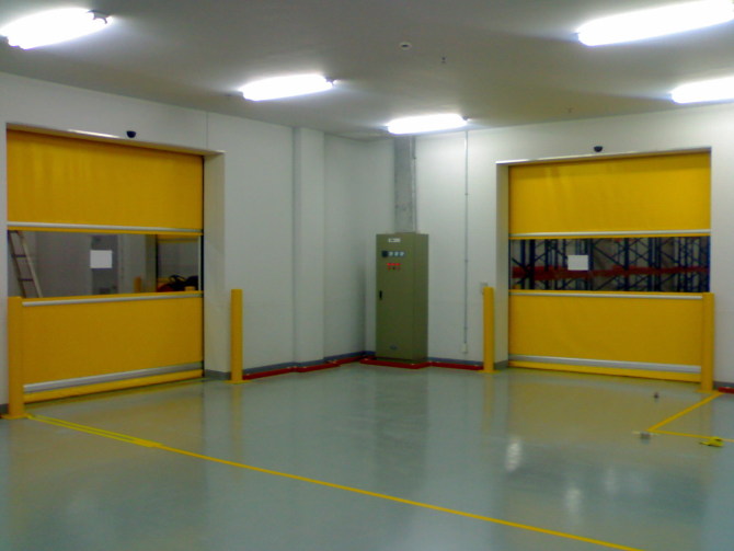 快速门、快速卷门、快速卷帘门、,使用于中等尺寸的内部/外部门,高频率物流通道使用。铝制防风型材与挺括的织物门帘不仅美观和牢固,而且可承受较大负荷。织物门帘与可视窗材料均可替换,能分隔不同温度区,防止空气对流,保证室内恒温、防虫防尘。